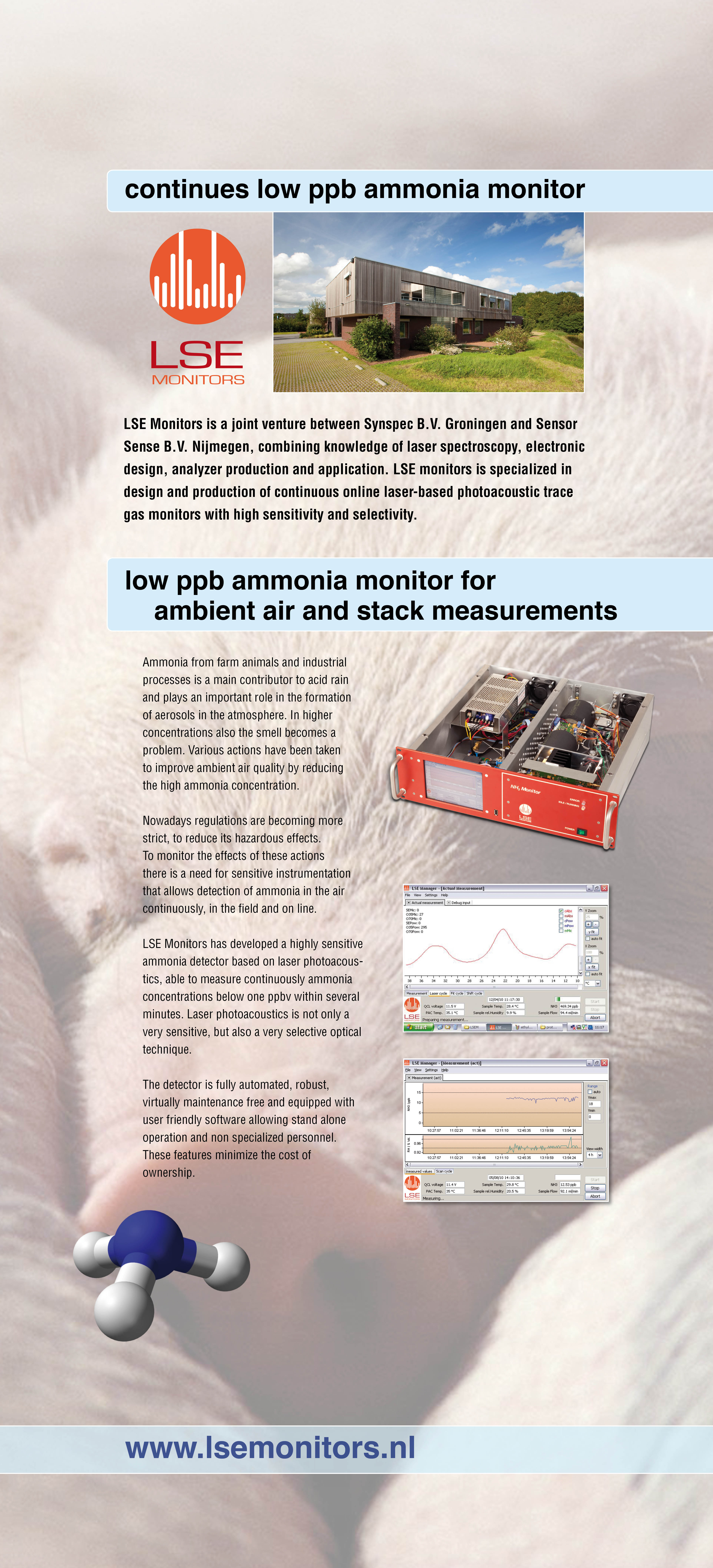 LSE Monitors has developed a highly sensitive ammonia detector based on laser photoacoustics, able to measure continuously ammonia concentrations below 1 ppbv within several minutes. Laser photoacoustics is not only a very sensitive, but also a very selective optical technique.